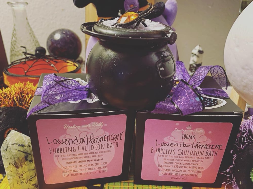 These magic moon cauldron bath bombs are made with doTERRA essential oils and each include a moonstone crystal for intuition, new beginnings and sacral chakra balancing. Simply hold this cauldron under your running bathwater and watch the magic begin!